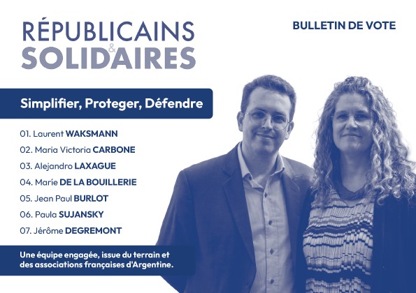 Alejandro Laxague est engagé dans la vie publique et institutionnelle en Argentine depuis plusieurs années. Spécialiste des relations institutionnelles et du dialogue entre acteurs publics et privés, il met son expérience au service d’une représentation moderne et efficace des Français de l’étranger. Attaché à la transparence, à la méthode et aux résultats concrets, il souhaite renforcer les liens entre la communauté française et les institutions locales. Au sein de notre liste, il apporte une expertise stratégique et une capacité de négociation précieuse pour défendre efficacement les intérêts des Français d’Argentine.