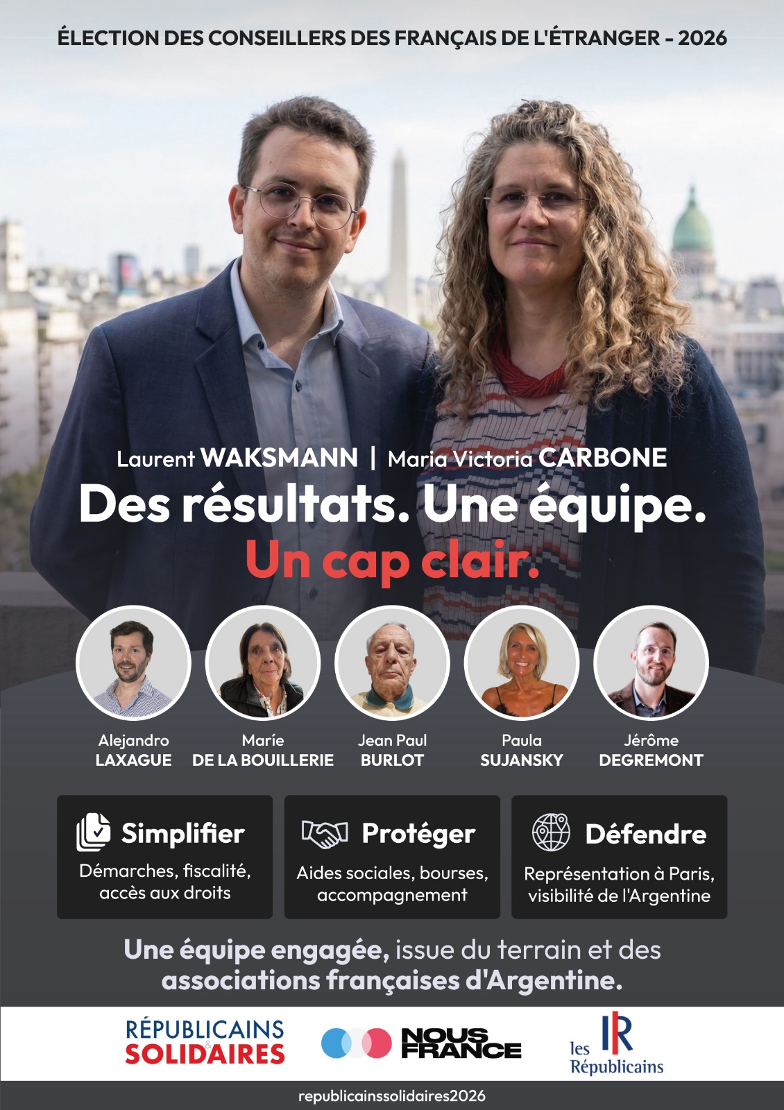 Marie de la Bouillerie s’engage depuis des années au sein de l’UFE-Argentine, dont elle renforce le réseau d’accueil, d’entraide et d’événements au service des Français d’Argentine, dans toute l’Argentine. Membre du conseil d’administration de l’Union des Français de l’Étranger, elle met son expérience des relations institutionnelles au service d’actions concrètes, notamment de solidarité. Sur la liste consulaire de Laurent Waksmann pour 2026, elle défend une représentation de proximité, exigeante et dépolitisée, centrée sur les familles, l’éducation, et la transparence du conseil consulaire, pour que personne ne se sente oublié, jamais.